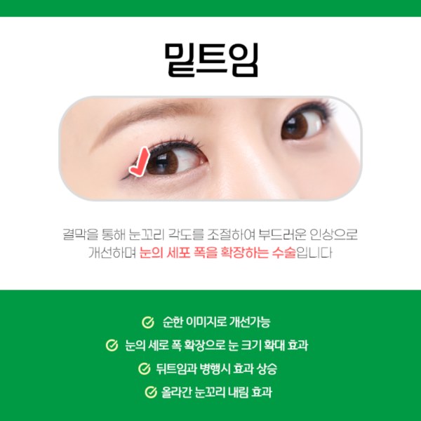 눈과 눈썹 사이의 거리나 얼굴형 등을 충분히 고려하지 않고 단순히 유행하는 라인을 따라가면 오히려 부자연스럽고 어색한 결과가 나타날 수 있습니다. 눈은 단순히 피부로만 이루어진 것이 아니라 근육과 눈을 뜨는 힘 등 여러 요소가 복합적으로 작용하는 섬세한 부위이기 때문입니다. 따라서 눈매의 움직임, 근육의 힘, 피부 처짐 정도까지 꼼꼼히 확인한 뒤 결정하는 것이 만족스러운 결과를 얻는 데 바람직합니다.
